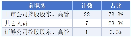 30人中,有22位是上市公司控股股东、高管,占比73.3%。