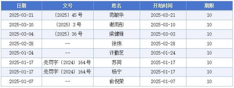 另外25人中,限期10年和5年禁入的各有8人,占比32%;限期3年禁入的有5人,占比20%;限期6年禁入的有2人,占比8%;限期2年和8年禁入的有各1人,占比4%。