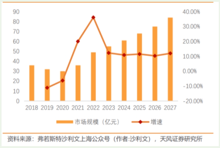 PEEK材料兼具轻量化、耐高温、高强度的特性,在人形机器人等战略领域应用前景明确。据行业研究机构预测,2024年中国PEEK材料市场规模已突破20亿元人民币,年增长率保持在15%~20%之间。预计到2027年,中国PEEK材料市场规模将超过50亿元人民币,年复合增长率达25%以上。