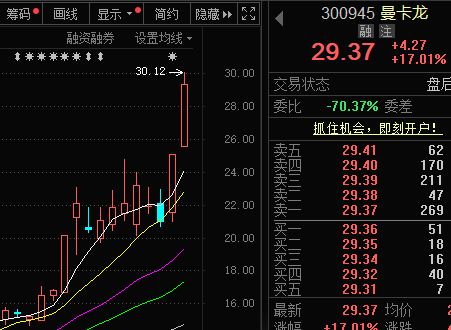 继昨日20CM涨停后,曼卡龙(300945.SZ)今日再度大涨17%,近2个交易日其股价累计上涨40.39%。
