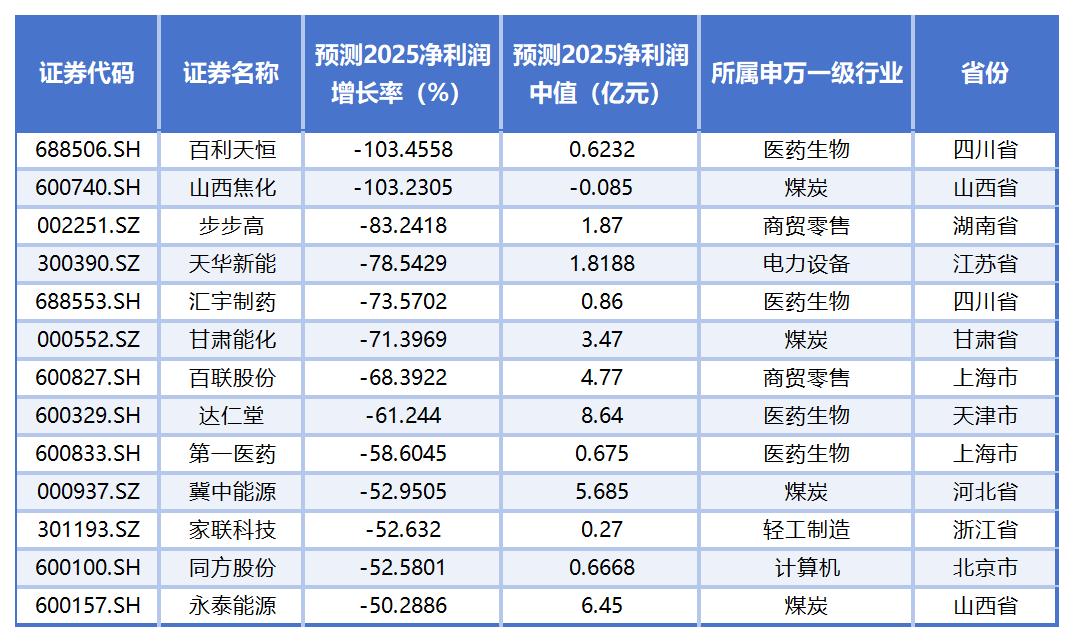 同花顺数据显示,截至6月15日,135只个股预测2025净利润增长率为负。