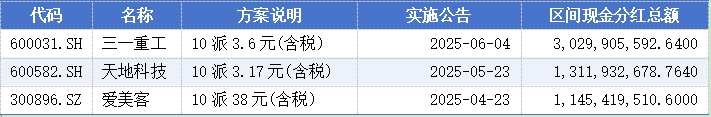 专用设备制造业以三一重工、天地科技、爱美客为代表,也只有这三家公司分红金额超过10亿元。