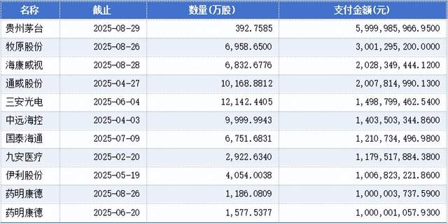 从已完成股份回购的企业支付金额来看,贵州茅台、牧原股份、海康威视、通威股份、三安光电、中远海控、国泰海通、九安医疗、伊利股份、药明康德的回购支付金额较高,均超10亿元。