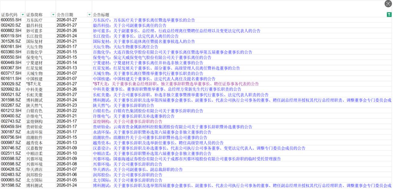 31家企业董事长离任