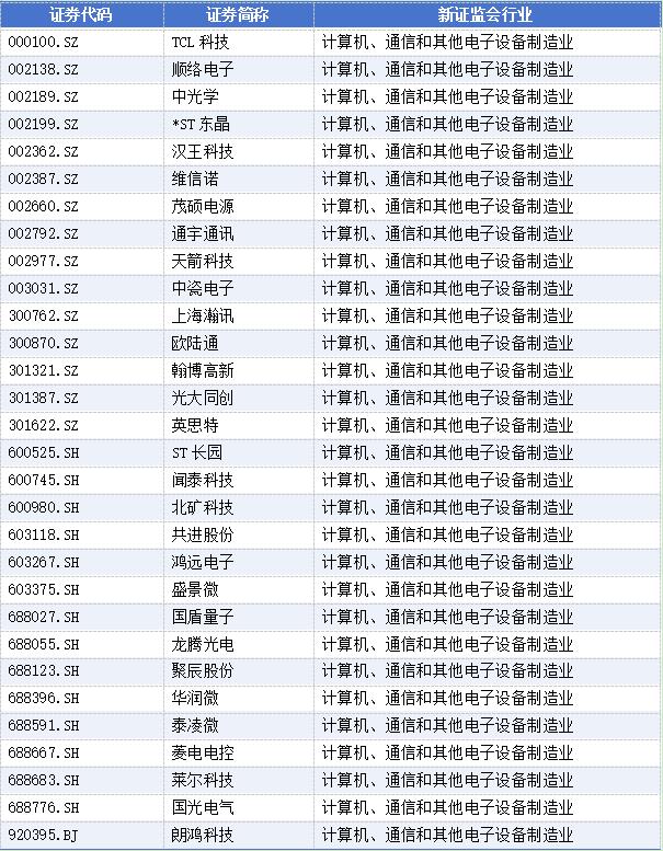 其中,计算机通信和其他电子设备制造业最多,达30家,分别为: