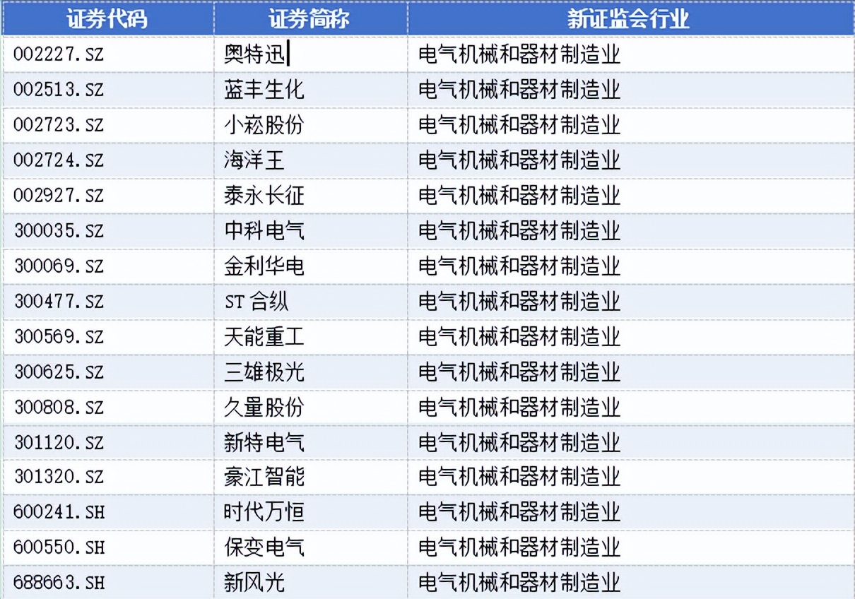 电气机械和器材制造业有16家,分别为: