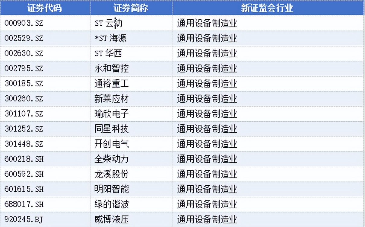 通用设备制造业有14家,分别为: