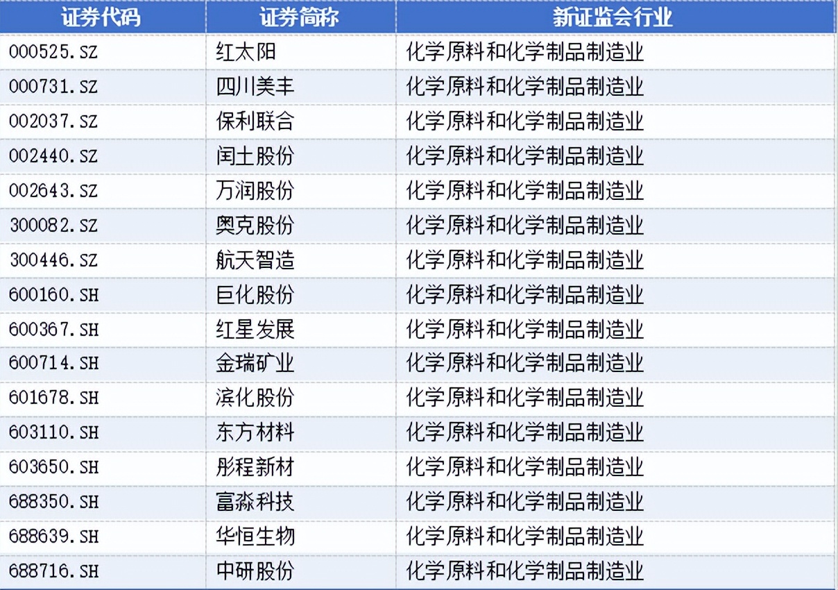 化学原料和化学制品制造业有16家,分别为:
