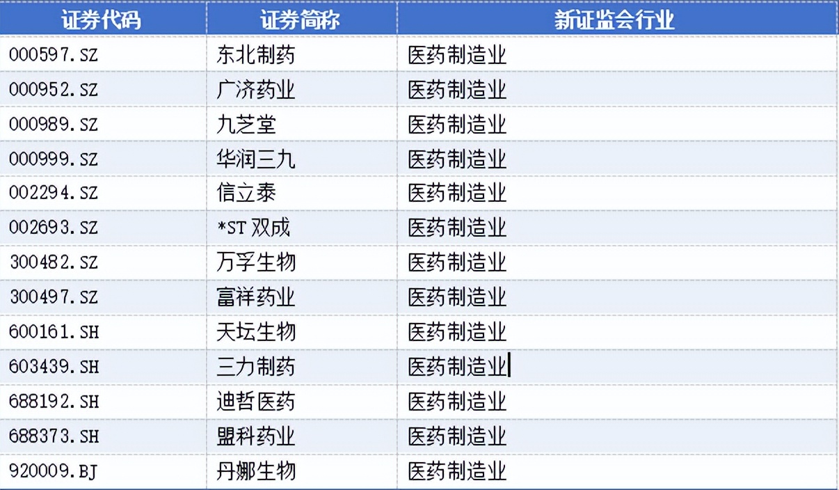 医药制造业有13家,分别为: