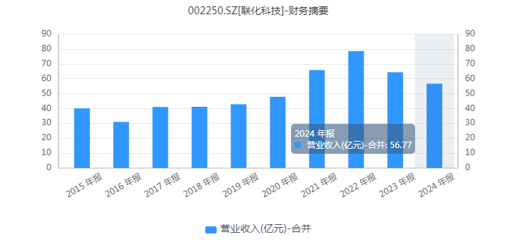 在全球化工行业竞争加剧的背景下,联化科技交出了一份颇具韧性的2024年成绩单。尽管营业收入同比下滑11.88%至56.77亿元,但利润总额同比增长159.94%至2.41亿元,归母净利润更是大幅增长122.17%至1.03亿元,成功扭转了此前亏损局面。