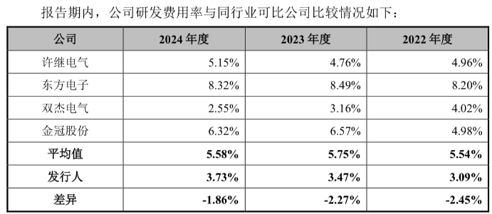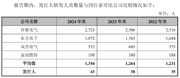 相比之下,截至2024年12月31日,许继电气研发人员数量高达2723人,东方电子研发人数1972人,双杰电气研发人员也是达到了532人,金冠股份的研发人员198人,相差悬殊。