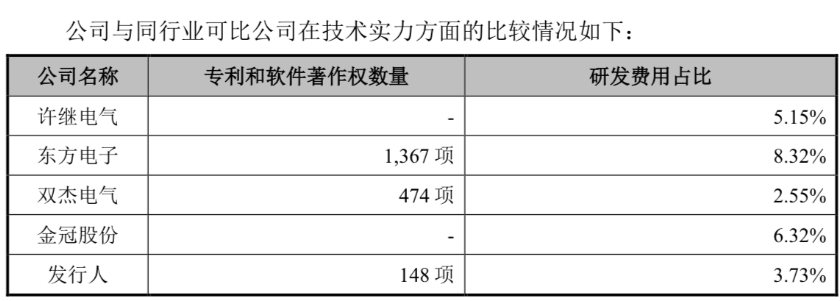 由于具体产品种类和产品结构与同行业可比公司存在较大差异,同时受限于公司经营规模和资金实力,昊创瑞通不仅专利和软件著作权数量少于同行业可比公司,而且研发费用率低于同行业可比公司平均水平。