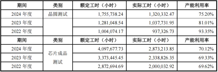 然而,截至2024年,华宇电子封装测试的产能利用率仅77.56%;芯片成品测试产能利用率仅70.12%;晶圆测试产能利用率仅75.20%。