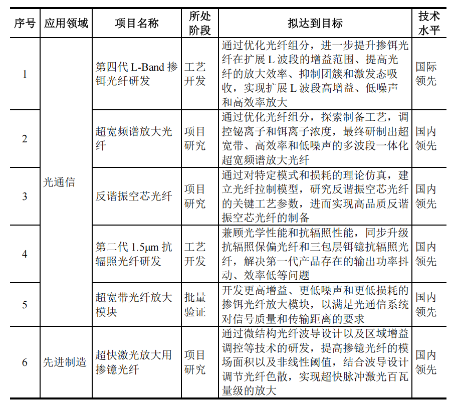 《奕泽财经》注意到,长进光子特种光纤应用范围包括光通信、先进制造、测量传感等几大领域,在这个几个领域,长进光子均有在研和储备项目,但是,11个技术储备项目中,仅有“第四代 L-Band 掺铒光纤研发”项目的技术水平标注为“国际领先”,而其余十个在研技术均为“国内领先”。