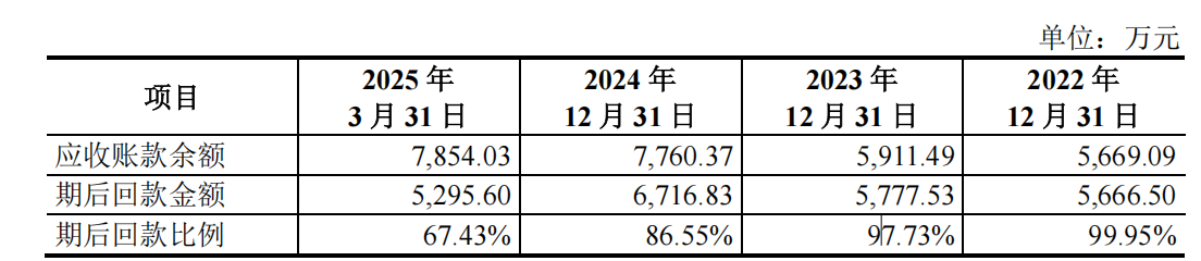 《奕泽财经》注意到,在2022年,长进光子应收账款期后回款占比高达99%,即,赊账款项几乎全部收回,只不过客户在时间上有所拖延;但是到了2024年,期后回款比例仅有67%,近4成应收账款未能在期后收回。