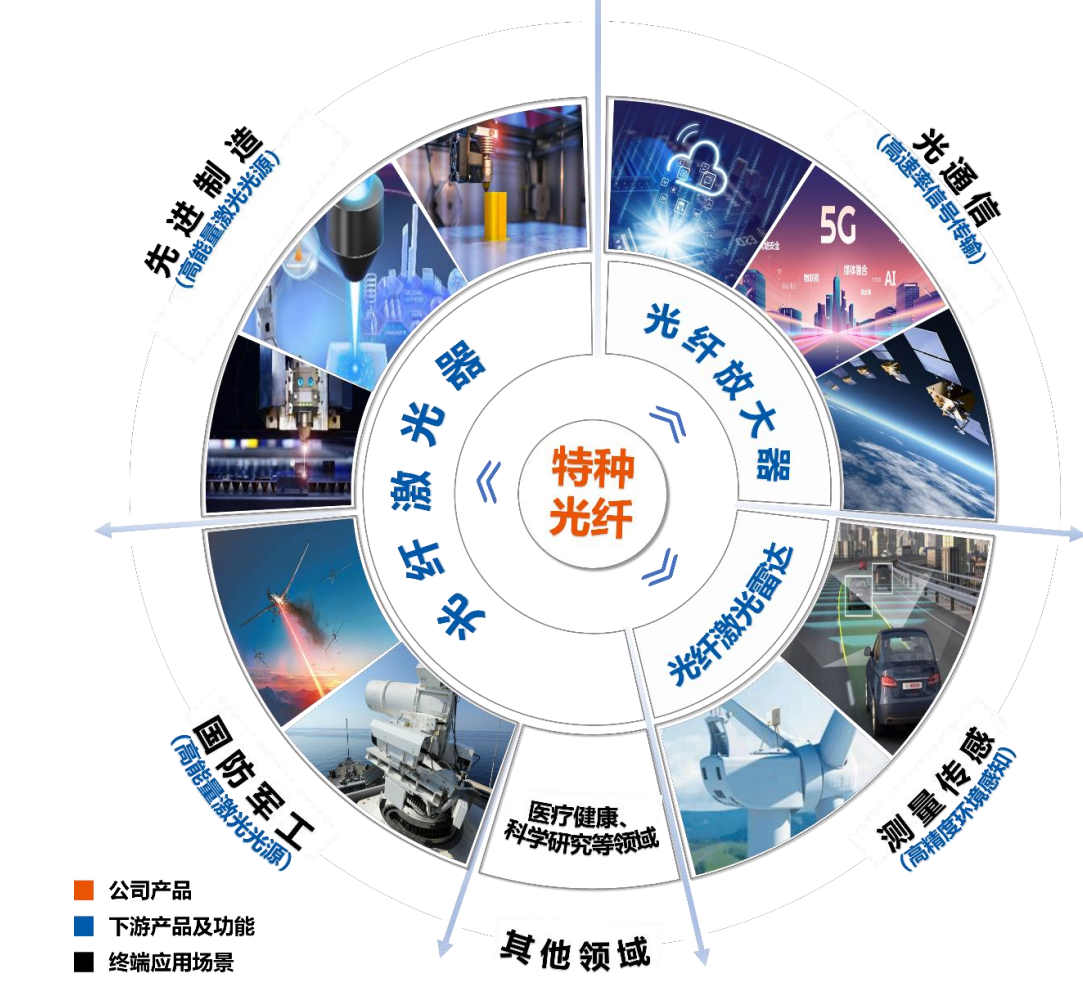 光纤是用来传输光信号的工具,通常为玻璃纤维或者塑料纤维。通过在光纤制造材料中加入稀土元素,如镱、铒、铥等,可以实现光信号传输的增益、降噪、安全、抗干扰等功能,这就是特种光纤。特种光纤的应用包括光通信、工业激光器、光纤放大器、光纤激光雷达等方面。