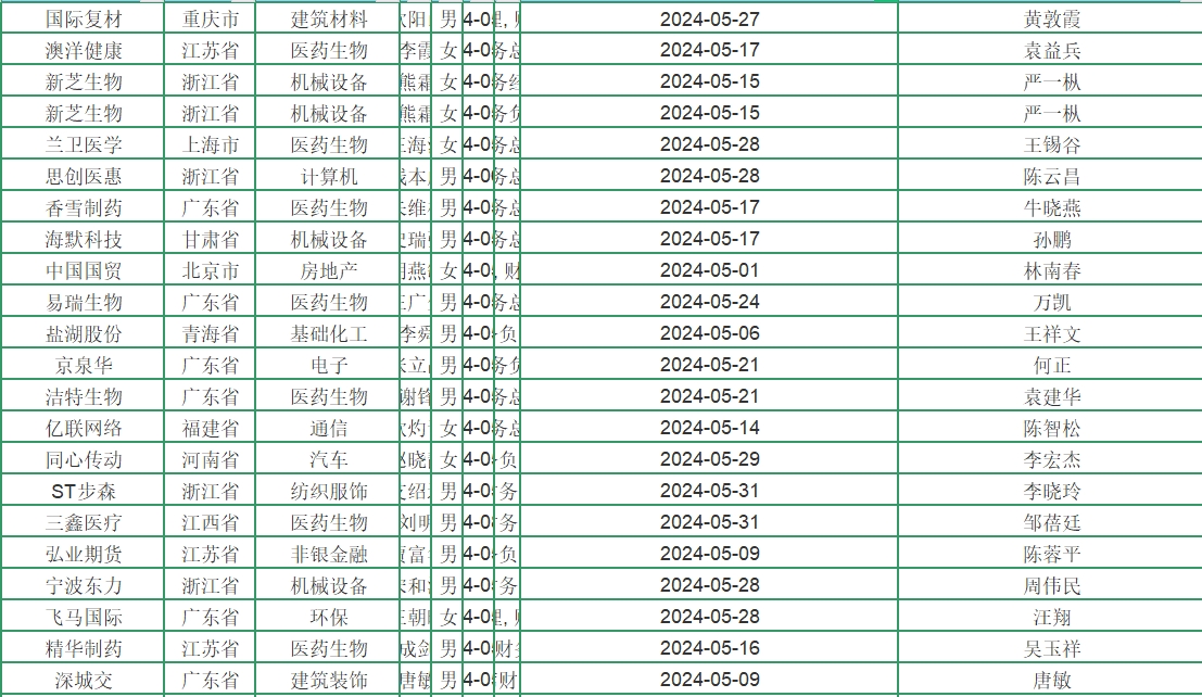5月财务负责人变动企业最多