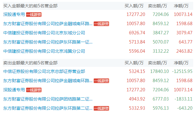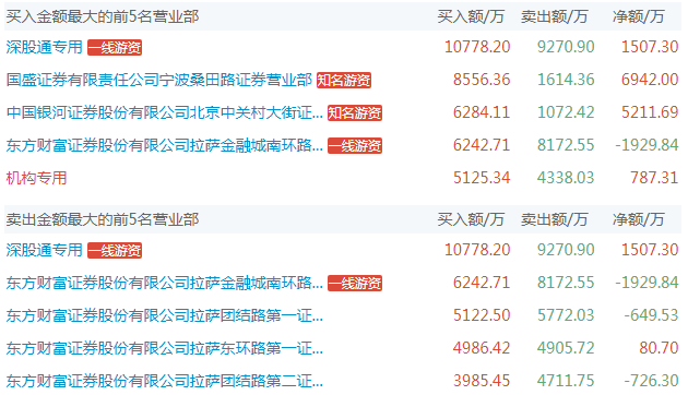 龙虎榜数据显示,近一个月,该股13次上榜。其中,东方财富证券拉萨金融城南环路证券营业部、东方财富证券拉萨团结路第一证券营业部、中信证券北京总部、国盛证券宁波桑田路证券营业部等多家顶级游资悉数现身。