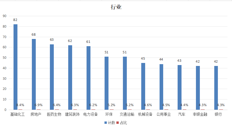 从行业分布看,根据申万一级行业分类,基础化工、房地产、医药生物、建筑装饰、电力设备、环保、交通运输等行业破净股数量均超过50家。其中,基础化工以82家的数量高居榜首。