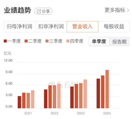 2024年前三季度,江丰电子实现营收26.25亿元,同比增长41.77%;归母净利润2.87亿元,同比增长48.51%。其中第三季度实现营收9.98亿元,同比增长52.48%;归母净利润为1.26亿元,同比增长213.13%。单季度营收和净利润均创历史新高,业绩表现十分亮眼。