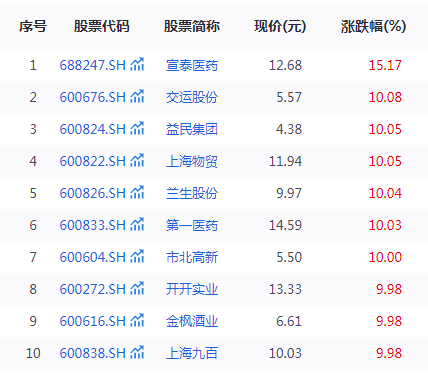 12月11日,上海国企改革概念股活跃,上海物贸、第一医药、市北高新、开开实业、金枫酒业、上海九百、上实发展等多股涨停。
