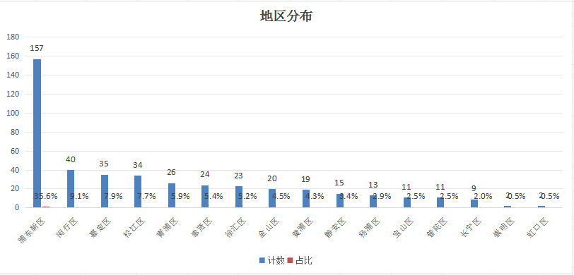 按地级市划分,441家A股上市公司中,有157家位于浦东新区,占比高达35.6%。其次是闵行区、嘉定区、松江区,分别拥有40家、35家、34家。