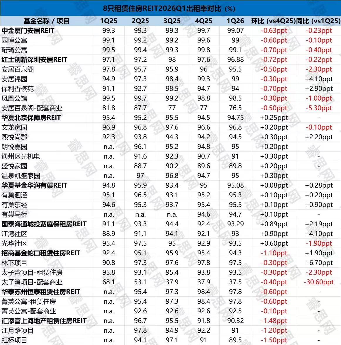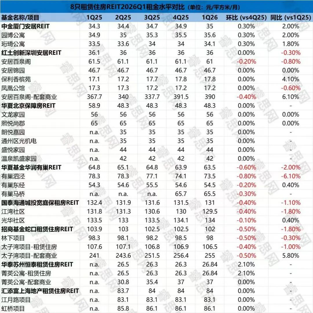 行业大环境不用多废话,现在已经从过去那种大规模盖房、冲增量的阶段,转到存量盘活、做专业化运营的新阶段了。政策端也在往这方面引,鼓励把存量商品房改成保租房,税收、再贷款、专项债这些工具也都跟上了。而租赁住房REITs,作为当前住房租赁市场里最规范、信息最透明的运营主体,其一季报数据,说白了就是行业运行质量的“晴雨表”——好的坏的、强的弱的,一眼就能看明白。