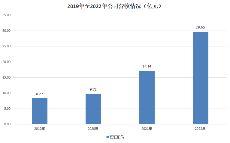 近年来,博汇股份的整体经营保持稳健,公司的营收情况也保持稳定。2019年至2022年,博汇股份分别实现营收8.27亿元、9.72亿元、17.14亿元、29.65亿元。2023年前三季度,公司实现营收约19.12亿元。