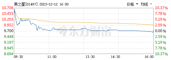 12月12日,燕之屋(01497)在港交所主板上市,发行价为每股9.7港元。