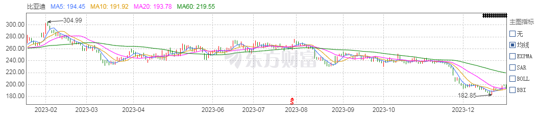 2023年,在持续推进规模扩张的多重阻力之下,比亚迪股价表现与经营基本面已经出现严重的背离。最新股价距离历史高点几近腰斩,最新市值5600亿元。