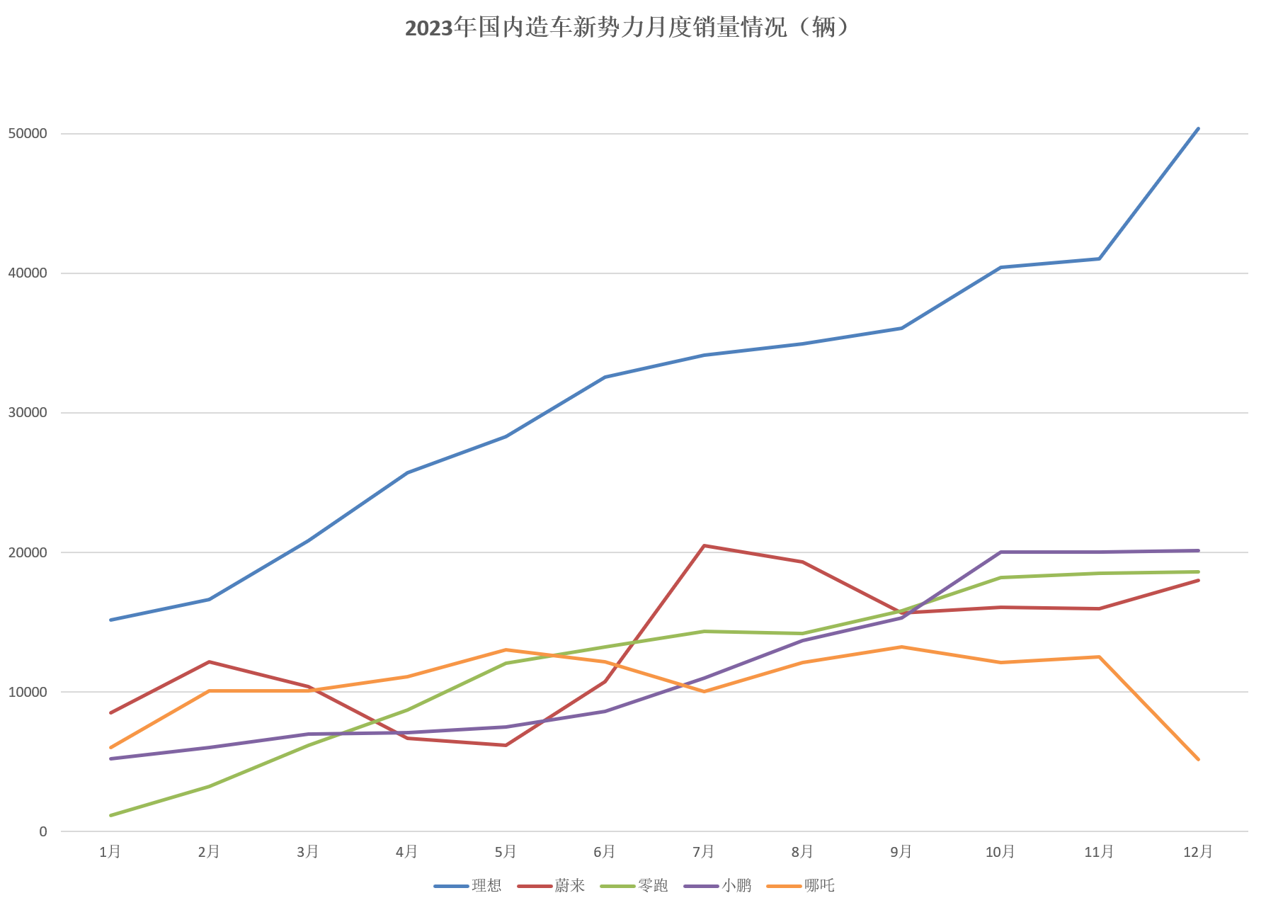 理想2023年销量遥遥领先,其他品牌也在努力追赶。
