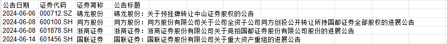 除此之外,证券行业内其他并购重组也在持续稳步推进,且颇受市场关注。
