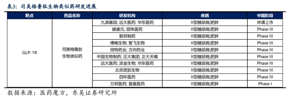 值得注意的是,目前国内约有15种司美格鲁肽仿制药进入临床,约有11种已进入临床后期。