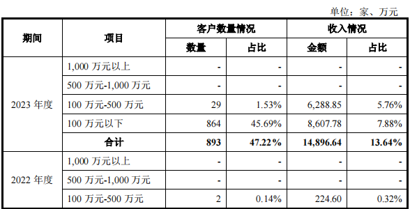 2021—2022年,公司一次性购买客户收入占比均较低,且该等客户销售金额均主要在100万元以内,表明公司主要客户黏性较强,新增主要客户在报告期内大多数均能转化为持续购买客户。2023年,公司一次性购买客户数量和金额占比显著增高。