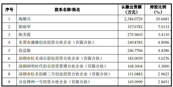 截至2024年2月29日,盛雄激光共有22名股东,其中自然人股东10名,机构股东12名,3名机构股东为陶雄兵担任普通合伙人的持股平台,其他股东为外部投资人。