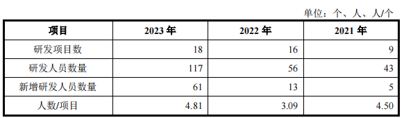 从三大业务分布看,在半导体激光器方面,2023年,虽然发行人研发项目数量较2022年末未发生明显变化,但研发项目投入规模大幅增加,其中半导体事业部的研发投入为8,647.28万元,较2022年的4,906.80万元增加76.23%。
