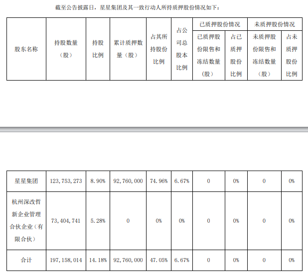 据水晶光电7月12日公告披露,星星集团及一致行动人所持质押股份情况如下: