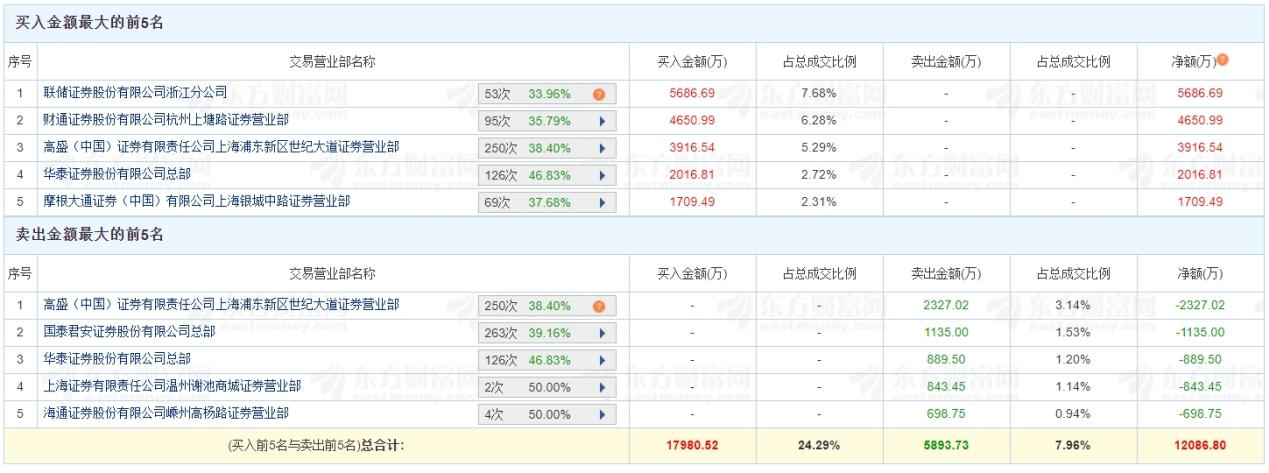 此外,7月11日龙虎榜数据显示,前五买入席位合计买入1.8亿元,前五卖出席位合计卖出5893.7万元,买卖净额约为1.2亿元,也是当日龙虎榜中,资金流入最多的个股。