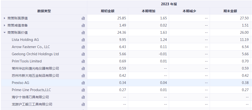 截至2023年末,巨星科技的账面有近25亿元的商誉。