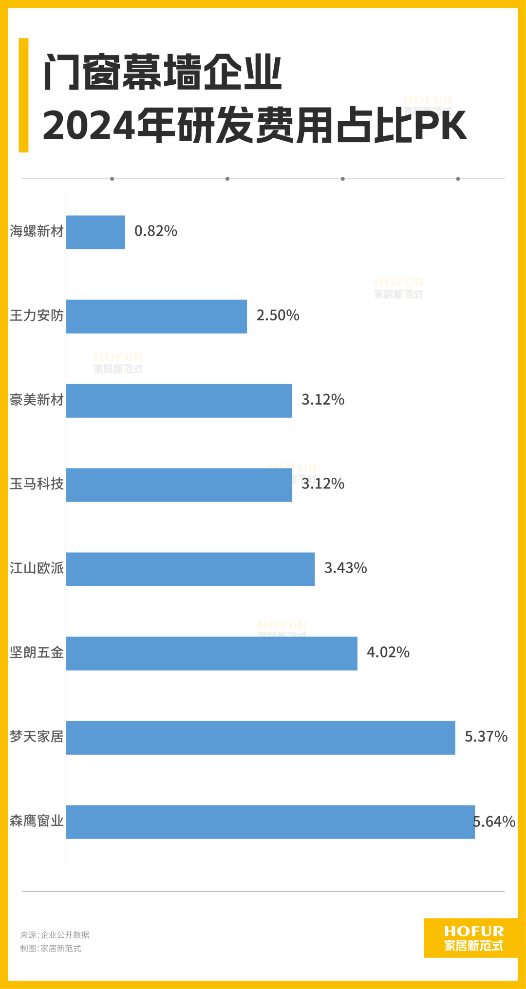 家居新范式发现,去年在研发上投入超过一个亿的门窗幕墙企业有坚朗五金、豪美新材、江山欧派三家,不过研发费用率只有森鹰窗业、梦天家居超过5%,在门窗幕墙行业属于较高水平,可见两家企业越发重视技术壁垒的构建。
