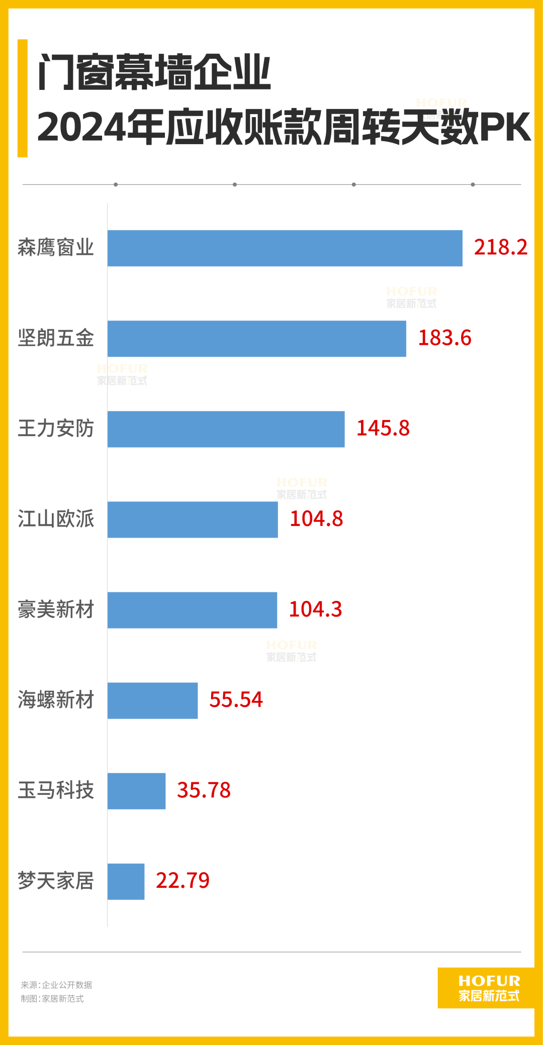 应收账款周转天数方面,森鹰窗业、坚朗五金超过半年,超过三个月的则是王力安防、豪美新材、江山欧派。海螺新材、玉马科技、梦天家居回款较快。