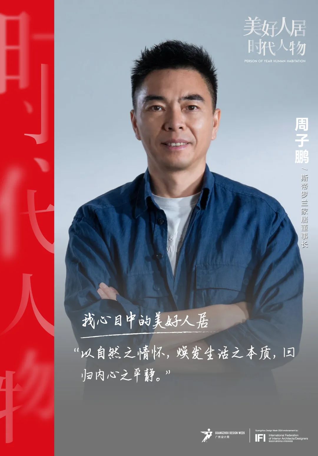 在“当代人居生活美学策源地”的发展愿景下,广州设计周携手家居新范式打造《美好人居时代人物》、《美好人居青年领袖》内容栏目,记录90+泛家居产业领军人物与先锋人物为满足人们对于美好人居生活的向往,而在材料技艺、空间业态、生活方式等方面所做出的策源创举和卓越贡献,深度探讨行业发展的新趋势、新未来、新模式。本期专访对话斯帝罗兰家居董事长周子鹏先生,探讨斯帝罗兰家居用产品与生活对话,用生活和未来共鸣。