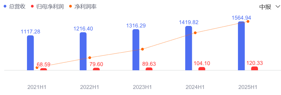 从业绩来看,改名后的2020年至2024年,海尔智家连续5年实现营收与净利润“双增”,扣非净利润也告别改名前(2019年)的负增长。财报显示,2025年上半年海尔智家经营业绩亮眼,实现营业收入1564.94亿元,同比增长10.2%;归母净利润120.33亿元,同比增长15.6%,两项核心指标均创历史新高。