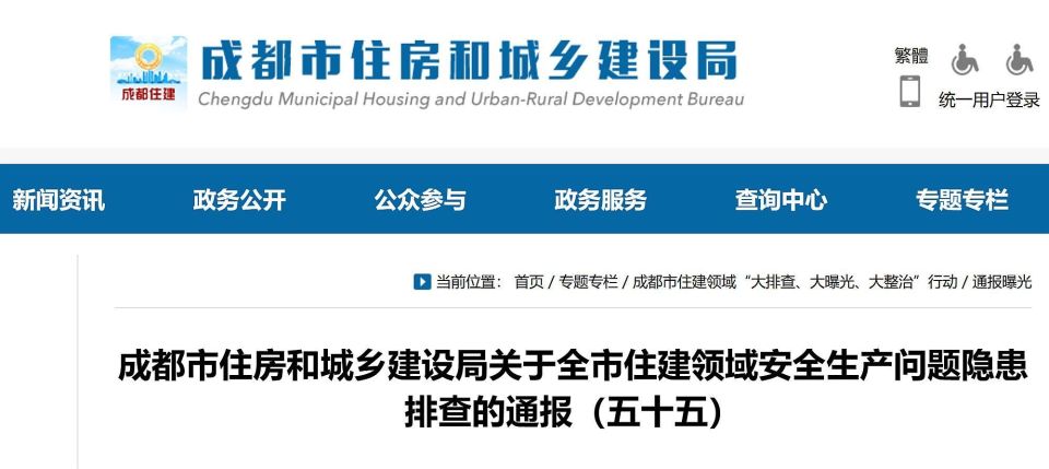 据悉,成都市住房和城乡建设局要求相关区(市)县要对通报的问题高度重视,督促责任企业逐一对照问题清单,抓好整改闭环,同步采取约谈提醒、信用扣分、移交处罚等措施,持续加大监管力度,杜绝安全事故发生。