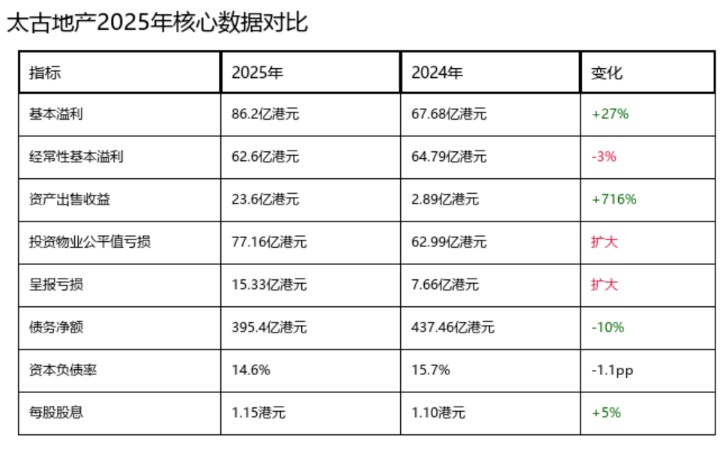 换句话说,如果没有这些资产出售,太古地产的基本溢利约为62.6亿港元,反而比2024年少了约3%。