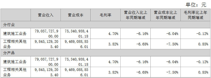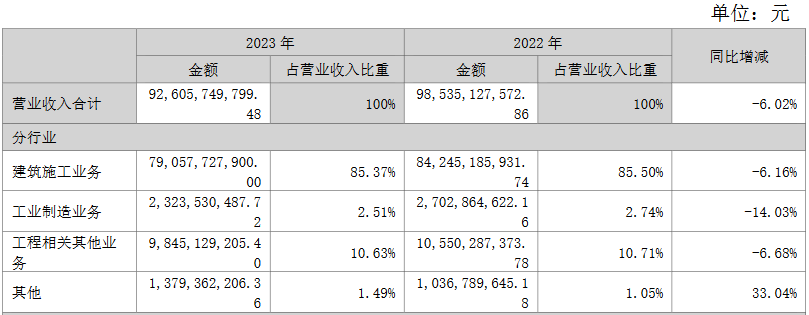 不仅是建筑施工业务,浙江建设的其他业务营收也是缩减的。根据披露,该公司的工业制造业务实现营收约23.24亿元,同比下降14.03%;工程相关其他业务实现营收98.45亿元,同比下降6.68%。