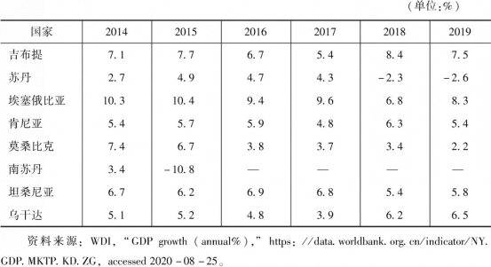 表1 部分东非国家近6年来的GDP增长率
