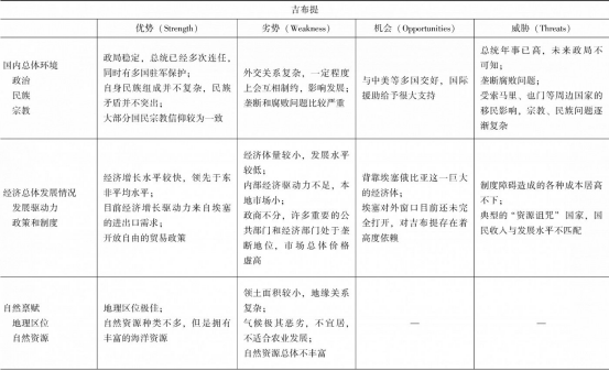 表2 吉布提经济地理条件的态势分析(SWOT)