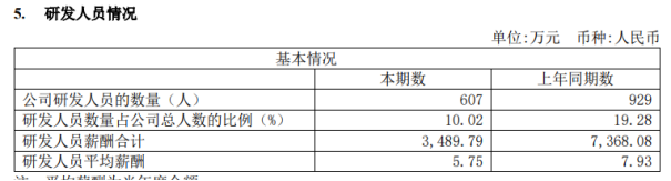 虽然对核心技术人员团队做了补充,但大全能源整体研发人员的规模却在缩水。截至今年上半年,大全能源的研发人员规模为607人,较去年同期的929人减少了34.66%,人员占比从近20%“腰斩”至10.02%。