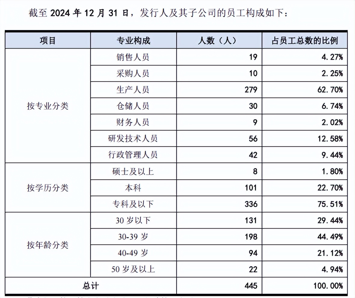 截至2024年12月31日,同宇新材共有研发及技术人员57名,占员工总数比例为12.81%;公司核心技术人员共3人,分别为张驰、章星、徐国正。